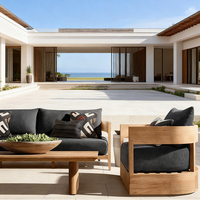 ספה חיצונית עץ מלא ספה חיצונית וילה חצר גינה חיצונית ספה חיצונית מרפסת שולחן עבודה גן ריהוט מותאם אישית